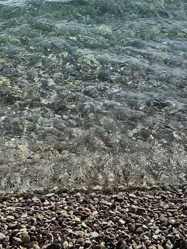The place was incredibly peaceful and very, very clean. A pleasant 2 short blocks to an idyllic beach with shower) next to a pleasant taverna. For the price, we were expecting much less. There is a full kitchen with stove, fridge/freezer and coffee maker on each 3 room floor but we seemed to have the whole place completely to ourselves. We could have been comfortable here for weeks. The ac worked well and we had a nice balcony with clothesline and clothespins. Big empty closets and dresser and clean, modern bathroom in our room. Cool and clean tile floors in the whole house. Wifi was fast and reliable and password taped inside the door. Private fridge also in our room. It is a nice little village with great clean and clear swimming, otherwise not...