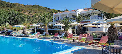Turn up, drop your bags and let the family look after you. ||Home, from home in a hotel that cares about their guests in all sorts of small and unexpected ways. Gentle efficient service, always friendly and relaxed. ||It’s a spotless 3* with fresh room furniture, slightly let down by the showers. That aside, with private balconies and views over the sea; you can’t go wrong.||The pool a perfect place for a post Yoga sunbathe/bliss-out. The hotel very well setup to support the Egg studio’s retreat programme - a five minute walk down the road. Grab one of Dimitris’ evening cocktails, relax and watch the sun melt into the sea.||Get Effie at reception to get you a scooter/moped and spread your wings, there are near-private beaches and lovely tavernas to explore - as well as the incredible panegyric-saints-day parties that pop-up in mountain villages. Don’t worry no one drives much faster than 30km/hr - the island vibe doesn’t seem to allow it.||Great for families, yoga groups, and also for couples looking for a well placed comfortably relaxing hotel to base exploration of the northern side of this incredible island.||Notes: taxi was 60Euro and over an hours drive from the airport. The port of Evdilos is 15 minute/15 Euro drive. Avoid the rental firms...