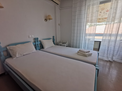 The friendly and welcoming Rania met us at the wharf. We were taken up to the room on the top floor (with the best view !- as per my request at the time of booking) Basic, but very clean room with ensuite. We Sheets/towels were changed during the week. Small balcony at back with views to sea and great views from window and front balcony. Fridge and tea/coffee making facilites, aircon and TV-although we didnt watch it during our week long stay. There is a fantastic place for food (greek yoghurt and fruit salad to die for) just a few metres further up the hill and many, many restaurants all over town, especially on the harbour front. We felt we paid a very fair price for high season and such a convenient location. Would recommend if wanting something simple in town..the walks past the churches and through the maze of cobblestone lanes down to the harbour was a highlight of the...