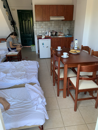The Iriana village inn is run by a husband and wife, both very kind and attentive hosts who do their best to meet guests’ needs. They don’t really speak English, but we easily communicated using Google Translate, and it worked perfectly fine. The accommodation is quite simple – almost “Spartan” – but has everything required for a comfortable stay. The ground floor includes a living room, kitchen, and bathroom, while the upper floor has a bedroom, another bathroom, and a terrace. Personally, I prefer softer beds, and here the mattresses are rather firm – but this seems to be standard across Greece, as locals are used to it.