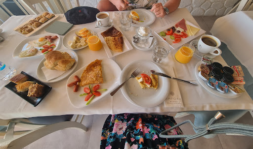 First of all I’d like to say that everyone working at Emily’s and Bakalis was very kind, helpful, and solution oriented. With our holiday starting with a four hours delayed arrival at SKG, an alternative solution for our transport to Pefkochori was found within 15 minutes. When my wife fell sick, someone brought us cutlery, plates, and honey to our room. When we asked for sun beds at the beach, they were made available to us a few days later.