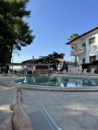 Read moreMy partner and I stayed at this picturesque hotel in the middle of August 2025. The first thing to say about this hotel is the amazing view from the terrace - it’s a joy to overlook the turquoise sea from the pool. Secondly, the staff are amazing. We arrived to a warm welcome from all staff, but Evripidis (who works in the pool bar) is the one who stood out - friendly and made excellent iced coffee!||The rooms are basic, but very clean and perfectly acceptable for a week’s stay. The only slight negative is in the room we stayed in the bracket holding the shower head was broken so it would either be facing the wall or fall off and soak the bathroom. There was also a shower curtain, which personally I hate. It would stick to you in the shower and block the plug if you weren't watching, leaving the bathroom flooded. The air condition was a paid extra. It worked well and was definitely necessary, however it was quite noisy at night.||Breakfast was pleasant with a range of cooked options and continental style - however it did become quite repetitive after a week.||There is a path (quite steep) at the back of the hotel which takes you down to the beach. The water is crystal clear and the sea is warm with a sandy bottom (once you get out over the couple of meters of rock).||When we stayed there were a few families with smaller children. The children weren’t badly behaved, but as a couple who wanted a relaxing, quiet, holiday the noise from them playing in the pool did become aggravating at times. I understand this is not advertised as an ‘adults only’ hotel, and the hotel can’t stop who books, but it definitely had a slightly negative effect on our stay and should be considered if you are a couple looking for a peaceful break.||This brings me on to my biggest criticism - the constant need for music to be played around the pool area. The pool area is so beautiful with the sound of the waves below, the wind in the trees and the chirping of the insects. However, it is drowned out by ‘euro-pop’ being played from speakers located around the pool. In my opinion this constant ‘noise’ is not needed and would be much nicer without it.||Overall, a clean hotel, in a picturesque location with staff who are...