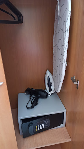 5/5 stars, great hotel, clean with great staff! Would totally return here,there was nothing negative really. 🏝️The beach and central area is a 5-10 minutes walk and there are shops and super markets everywhere close until late so you always can buy what you need. 🏠We had a pool view room with a balcony, which was really nice. The shower is big enough so you don't have issues with dripping water everywhere, but the shower head stand was a bit shaky (usage damage), it would be cool if they replaced it - but it was still totally usable, just a little wobbly. 🥞Breakfast was sufficient, there was white bread, cookies, cake, boiled eggs, fried egg, bacon, little sausages, beans, 3 types of cereal, fruits, salami, cheese, yogurt and some veggies. There was milk and juice available as well. There was no coffee stand for self service,but you could order a free coffee of your liking from the bar, which is 100 times better! 🤭 🐱The pool got very crowded early in the morning so we didn't use it, but we preferred the beach anyway. It is a pet friendly hotel, and there were a lot of cats around (strays) that are used to the tourists and enjoy all the snacks they get. 🔗There is free WiFi but is a bit slow sometimes and at night it stopped working for some reason. 🍽️In the room there is a proper hairdryer (thumbs up), a safe free to use and iron with an iron board. In the kitchen, there are some plates, glasses and water cooker, along with a small ceramic plate and a small fridge with a small freezer, which basically covers cooking if you are staying for a couple of days. We stayed 3 nights only and our towels/sheets were not changed, but the room was tidied up every day. 🚙Parking: the hotel has a private parking that is located around 50 meters away that opens and closes with your room card (so you need to first check in and have your card in order to enter it). ❗If you are coming with a car: be aware that the whole area is extremely dense and full of parked cars, so there is basically possibility only for one car to go at a time (both directions is not possible), which means parking once you arrive before you get your key will...