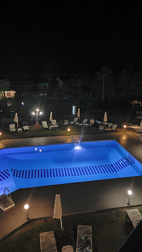 We were on a family trip for 10 days, and our experiences were incredible! We really enjoyed the pool. All sunbeds are around the pool, as the barbecue. Kids were swimming and hanging out with other children, me and my husband were lying under the sun umbrella and drinking our juices. We used the barbecue for the few times and ate near the pool with our friends, because there are tables and chairs there. The owners are really nice and good people, they keep all the rooms clean and clean the pool every morning. Even though the owner was cleaning pool early, we didn't hear him at all! They change bedclothes every three days. Rooms are good and the beach is about 100 meters close to the hotel. It is quiet, but you can listen to your music if you want, the owners don't have a problem. Great for every kind of family and romantic couples. Behind the hotel is play ground for...
