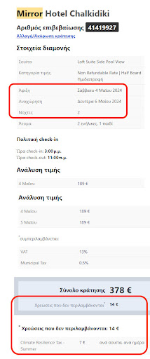 Το προσωπικό ευγενικό & πρόσχαρο - στη Reception & στο Εστιατόριο & για αυτό το λόγο στην ενοτητα "Εξυπηρέτηση" εβαλα 2 αστέρια, το οποίο βέβαια δεν ανταποκρίνεται στην πραγματικότητα, διότι σίγουρα άξιζαν περισσότερα αστέρια, αλλά η Κα Κλάρα πήρε ολο το προσωπικό στο λαιμό της με τη συμπεριφορά της & για το λόγο αυτό έβαλα 2 αστέρια... Τέλος,δεν συνηθίζω να κάνω αρνητικές κριτικές,αλλά απο τη στιγμή που βλέπω οτι προσπαθούν να με κοροιδέψουν & εκτός απο αυτό να θέλουν να με βγάλουν & τρελλό, με συγχωρείτε,αλλά δεν μου αφήσατε άλλη επιλογή απο το να σας κάνω αρνητική κριτική,1ον γιατί το οφείλω στον εαυτό μου ως υποχρέωση αυτοεκτίμησης & 2ον,για να προστατέψω τους μελλοντικούς υποψήφιους πελάτες! *Ενω μας είχαν βάλει φόρο διανυκτέρευσης 7€/βραδιά (επισυνάπτ. printscreen) & έπρεπε να πληρώσουμε συνολικά 14€ όπως θα δείτε & εσείς,τελικά μας χρέωσαν...21€ για 3 βραδιές! **Συμβουλή: ΟΤΙ ΣΑΣ ΠΟΥΝ ΣΤΟ ΤΗΛΕΦΩΝΟ ΝΑ ΖΗΤΗΣΕΤΕ ΝΑ ΣΑΣ ΤΟ ΣΤΕΙΛΟΥΝ ΕΓΓΡΑΦΩΣ ΜΕ E-MAIL, ΜΕ ΤΟ ΟΝΟΜ/ΝΥΜΟ ΤΟΥ ΥΠΕΥΘΥΝΟΥ, ΕΤΣΙ ΩΣΤΕ ΝΑ ΕΧΕΤΕ ΓΡΑΠΤΩΣ ΑΥΤΑ ΠΟΥ ΣΑΣ ΕΙΠΑΝ ,ΣΕ ΠΕΡΙΠΤΩΣΗ ΔΙΑΦΩΝΙΑΣ ΜΕΛΛΟΝΤΙΚΑ!
