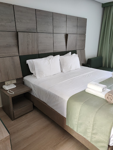 I recommend this hotel if you're not too food-picky. Read on for details. Rooms: Nicely decorated, modern, clean. Many options for illuminating the room. Nespresso coffee maker, coffee pads and milk filled daily (big plus). The door has a sliding mosquito net, but there are very few mosquitos anyway. Quite large bathroom. Water pressure is extreme ! Never seen such high pressure, it cuts your hand and other stuff if you're not careful. We had ground rooms, and we benefited of a large terrace with pool view. Pool: Very pretty, especially in the night (when you can't use it 😁). Really clean, good temperature. We enjoyed it. Restaurant & food: Well, the food disappoints, I'd rank it between 2 and 3 stars hotel. From all 3* hotels I've been in Greece, this was the worst. Breakfast is THE SAME every day ! Products are on the cheap side, all. I didn't like the scrambled eggs which is so bad, this is one product that might have improved the perception. Dinner is somehow better, but they cook cheap and pretty bad. Anyhow, we've not been hungry after dinner I should say. You CAN find something to eat. This hits you badly from the start, but then you can tolerate. The restaurant's personnel looks tired, minimally amiable, I didn't like that. We were 3 rooms on a big table, but with a couple of exceptions, they were bringing only 2 bottles of water. Juices - only when they remembered. In one of the mornings, my friend and I, we were at the breakfast. We didn't leave the table as phones and cigarettes were still there, but when we've returned to the table with the sweets, we discovered that the unopened water bottle was missing - we don't know if someone from the restaurant personnel has taken it, or a turist from from the next table. This was weird. So the restaurant is much below the 4* range overall, looks decoupled from the rest of the complex (which is really nice). This is the biggest improvement needed. Beach and see: The beach is so narrow ! They squeezed 3 rows of sunbeds. Sand is fine. The see entrance is rocky. Water shoes are recommended ! Sea urchins do exist, but not so much on the side we've been. When the water reaches the neck height (for an average height), there's only sand. You can rent paddle boards. Sunbeds prices varies quite a lot, it depends how fancy is the beach. We've found with 20 euros a set of 2, with 2 drinks included. But there are with 70 euros as well. See color is nice, transparency...