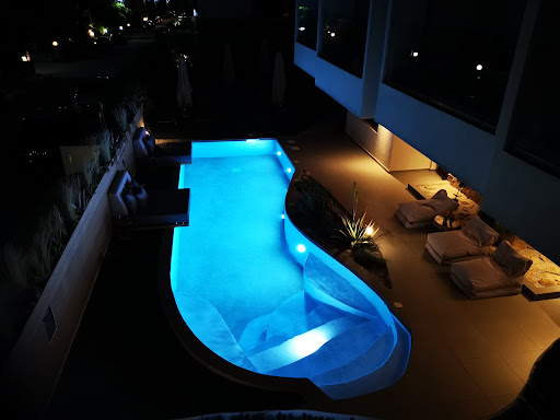 Edit: As the owner commented, we were obviously in the disability friendly room which explains all the weird things in it, however nobody told us that and that is why it seemed strange to me, they gave us a complimentary breakfast and the response was quick, that's why I am giving the 5 star back. Also all the staff we super polite and kind. The hotel is brand new, but you can see the rooms weren't really designed well, the bathroom seat is super high and uncomfortable, there isn't a shower hang and you have to hold the shower all the time, things in the room seem placed a bit randomly and there is a random door to the center of the hotel, so the room we were in was definitely not designed to be an actual room probably. Light in the room was very bad, the room just doesn't rly feel luxurious. Good things are that there is a nice table in front where you can eat, drink, staff was very nice and the front pool looks nice, there is also a bit of green grass area, which your kids would probably enjoy. Overall it was okay, but they definitely need to improve the rooms (guess not all the rooms were like that) for the price...