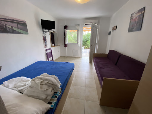 Ro. - Un loc foarte frumos, camerele sunt curata si orientate cu balconul spre mare, alaturi de cazare se afla si o gradina intretinuta unde te poti relaxa la umbra, iar pe cealalata parte a drumului se afla o livada de maslini. Parcarea se poate face in fata cladirii, langa statia de autobuz, ori pe cealalta parte a drumului langa livada de maslini. Gazda Ms. Georgia este foarte de treaba si ajuta in orice situatie, nici o problema ramane nerezolvata. Legat de raportul calitate pret este excelent, aceeasi bani care ii dai la Marea Neagra doar ca aceea nu se compara cu Marea Egee. Recomand cu mare incredere...
