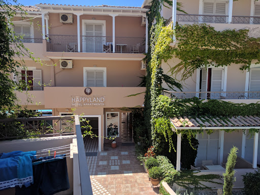 Just returned last night from a 2 week stay at Happyland. Overall, really good accommodation. Few little niggles though that prevented me giving a rating of 5. ||Good location, 5-10 minute walk to nidri centre which was far enough away to be quieter. ||Think more could be made of the pool bar, menu limited so didn’t really see many people eating there. ||Pool area lovely, kept spotlessly clean & tidy but parasols are needed!! The only shade was at the side of the building or inside. ||Cleaning in the apartment could of been better, nothing major that led to me feeling the need to speak to reception as only used the room for getting ready & sleeping but definitely needs improvement. Not a huge problem for us but might be for others. All public areas are kept so clean and tidy. ||Was extremely disappointed to not be given a room to use on our last day. We weren’t being collected until 7pm, and whilst I appreciate that they were fully booked I’m sure there were some late arrivals which could of meant they could clean a room later to allow us a room to shower & change before our journey home. Especially as there was 8 of us the first week, and 4 the second. Having spent around €2700 between us to stay there...not to mention the drinks we bought whilst there, I felt a bit more could of been done to accommodate our request. ||Overall a really good place to stay and would recommend. Few improvements would make...