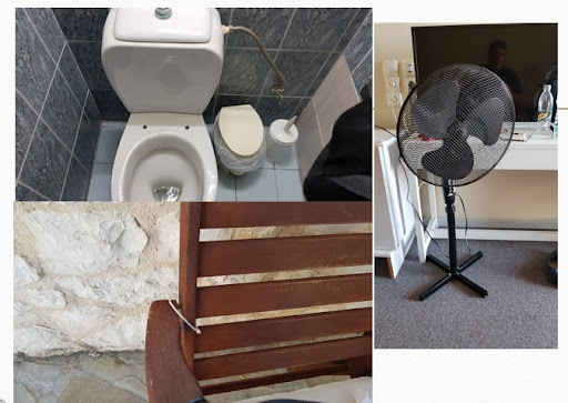 The air con did not work in the first room so they had to move us to another room smaller room at 1am (where it also did not work) then another room where it sort of worked. I had to sleep on the floor the first night as they were full. The air con was not much better in the second room either. We moved back to our original room and the air con was so so. Air con in a small room in the middle of summer in Greece with 4 people is a big deal so they really really need to sort this out.