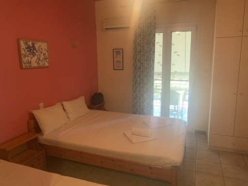 A nice family guest house - 5 rooms in all plus a tavern.||The room is small and a bit crowded, having one (extra) bed (useless for us) and very little overall space.||TV is usefull only for those who understand greek - it has only 5 programs. Not that we were there to watch TV, but sometimes a bit of news and weather forecast may be of interest.||There is also a kitchenette, and even if there is no breakfast included, Marina fills the fridge with free of charge products which may be used for this purpose. :)||Nice family, nice tavern, good food...