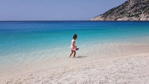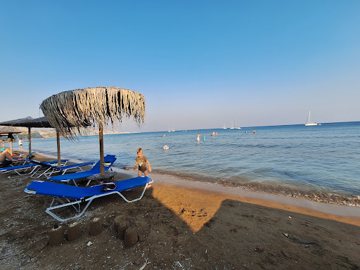 Firstly the beach is a 5 minute walk away which is very pretty. It's sandy and the sea stays shallow for a while so is good for swimming etc. There's a cafe and shower and rentable sun beds but no toilets or water sports etc.