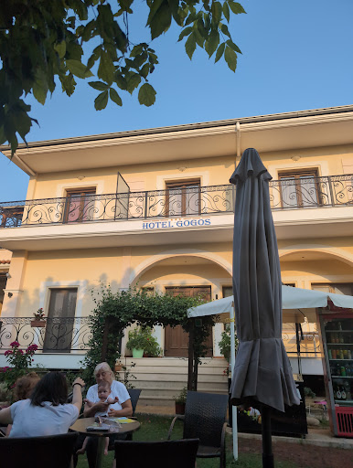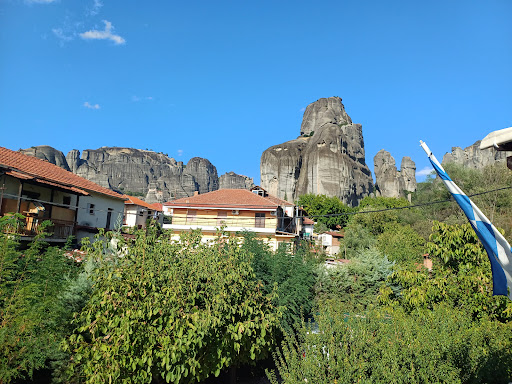 We arrived at Meteora at sunset after driving all day. We were tired and had no hotel reservation. We saw Gogos which had parking and looked nice so we stopped.||The hotel is well situated in the village of Kalambaka just a short walk up in to the central square. In the morning we were delighted to see the rock columns towering above us.||||This is one of the few hotels we have been to in Greece with a screen on the patio door which allowed us to sleep with fresh air pouring in. Unfortunately there was a guard dog tied up nearby who barked periodically during the night.||||We were the only guests in the hotel and it seemed that it must have been early season because there were no lights on in the lobby just the lights at the front door and at the desk. I guess they were in power conservation mode. The friendly couple running the place did not speak English so we had to do lots of gesturing. Fortunately their son who was in and out did have good English so were were able to negotiate the room rate with some certainty. The couple running the place sat in the lobby watching TV but did serve an unusual breakfast of grilled cheese sandwiches, yogurt and coffee which was tasty. I guess this early in the season isn't a great time to enjoy the amenities of the hotel which included a nice outdoor garden bar area. Although free internet was advertised we were never able to...