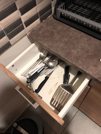 La cuisine n'est pas assez équipée (pas cafetière, pas de bol, pas de dessous de plat, plus de poivre) et sale (vieille éponge, les placard et la vaisselle n'était pas propre, poêles et casseroles usées), nous avons dû faire le ménage de la cuisine en arrivant . Aucun produit ménager à disposition, pas de balais, pas de torchons.