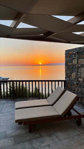 Read moreThis is one of the very first 5-star hotels built in the area, and the clear foresight of its creator must be acknowledged. |It is beautifully blended into nature, and its buildings are spread over a huge surface in such a way that – unlike other facilities – they are by no means disturbing.|The location, while not offering the very best view of Mirabello Bay and Spinalonga Island – which lies further north – is still breathtaking and its most fascinating feature in my opinion is the secluded, elegant, cozy, reserved, and quiet atmosphere.|Letting my gaze rest on the horizon of dramatic dawns or gentle sunsets, or following birds’ flights in the blue from the balcony of my room, has been highly regenerating for me.|Interiors are luxurious without being showy.|Everything I saw was kept immaculately, with gloss-varnished wooden surfaces and perfectly cleaned floors and furnishings.|A small, spotless and serene church that allows moments of reflection|The staff is highly professional, attentive, and empathetic, yet formal and respectful.|Breakfast was gorgeous, with every kind of excellent food and, though I do not usually indulge in sweets, I could not refrain from noticing eleven different types of cakes (a few of which I guiltily, but more than satisfactorily, tried).|The beach is quite small and the shade of the umbrellas may be insufficient at times, but there is an area under the olive trees that I particularly loved.|A few spots on the cliffs are simply spectacular. |The sea is crystal clear and very salty, so floating requires minimal effort and makes swimming even more relaxing. |Though perfection is not human, and in any case subjective, there were minor features potentially upgradable that I may constructively report.|Noise from a water scooter occasionally present (along with those from the neighboring Porto Elounda Hotel) and the lawnmower was sometimes a pain in the neck.|At least silent lawnmowers might be an easily accessible option.|Housekeepers should refrain from chatting while on duty, or anyway avoid speaking loudly.|Rope railings and/or handrails may be advisable along a few pathways flanking the cliffs or the sea, which may even become slippery.|The glass on the double swinging doors is very useful, but I am not sure it looks shatterproof.|Finally, though guests were overall very polite, they appeared underdressed compared to past standards, and a few behaved frankly inappropriately, so that a behavioral and dress code might perhaps be gently...