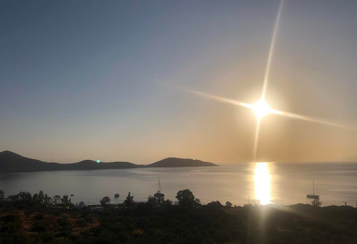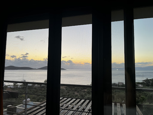 Concernant l'appartement l'emplacement est calme est la vue donne face a la mer sur la baie d'elounda c'est très jolie.