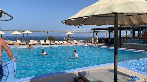 In a nutshell, a mixed review: we had a nice holiday, good food and drink, great views, friendly staff, spacious room, horrible small bathroom, not as pictured at all. One pool beautiful the other not so much and looks much nicer in the photos. Some lovely parts of the hotel and others quite run down or looked half closed/abandoned even in high season. Almost felt like two different resorts in some respects. Most things above reception were lovely but the aesthetic and noise of the lower pool with the slides meant it wasn’t for me.||STAFF:|Lovely warm reception at 2am, immediate transfer up to room up the hill on the buggy, and they kindly said we could sort out the tourist tax when we got up for breakfast. Sandwiches and fruit in the fridge in our room was a nice idea. |We also lost our son’s comforter when the beds were changed, which they found and delivered back to our room for us which was much appreciated.||Thank you to Maria at the top pool bar who always remembered your order with a smile, and Valentina who helped with organising a vegan menu for my son and I for the night we booked the meze restaurant. ||LOCATION: |It was a straight and easy drive from the airport on good roads (we rented a car) about an hour at 1am|Directly above Elounda where you can do boat trips etc, about a 15 min drive to Plaka beach which I highly recommend visiting.|Wonderful panoramic views from all over the resort especially the top pool, restaurant and seating areas above. ||ROOM:|We had room 32 which had a fantastic view and as mentioned wasn’t far at all to walk up the slope from the main pool/restaurant level. We booked the ‘family room’ through Love Holidays and, after careful checking and some misleading information from Love Holidays which implied a 1 bed room, we discovered we’d be randomly allocated either open plan, sliding doors or two room lay out, I emailed the hotel to request anything but open plan (my husband snores and we don’t sleep in the same room at home either!) and was kindly told by the manager they can’t guarantee but they would do their best - we got the 1 bed (ie 2 separate rooms). Lovely spacious room, plenty of storage and comfy beds, kids beds a little firm but fine. The room was great with calm decor, and a nice balcony with glass wall to expose more of the a fantastic view. Parking space also right outside. ||The shower room however was a complete horror show… absolutely tiny, such that there was a folding door as it was so close to the sink and toilet. More like a wet room as hard not to drench the floor when showering, and being right next to the main door to the room, with leaves and dust blowing in (Crete is a windy place) if you wanted to step out of the shower on to a clean dry bath mat you had to carefully plan this to angle shower head in to the corner and have spare bath mats to hand. No thought had gone in to design at all, even to the toilet roll holder being too low on the wall when you sat on the toilet. Considering they didn’t want you to flush any paper at all down the toilet, it was pretty grim that the horrible plastic white bin (still with stickers on) provided had a broken foot pedal. So had to wash hands every time you put something in it and due to the heat it was very smelly in the bathroom. No where to hang towels apart from one hook for hand towel which meant the towel then covered the soap dispenser - which by the way was empty when we arrived although promptly filled up when requested. ||CLEANLINESS|Not fantastic in room. Dirty in corners. Why even higher end hotels can’t build regular detail cleaning in to their schedules I have no idea (skirting boards, behind the taps etc). So this hotel was no different. But even for day to day cleaning - I cleared the whole (very small) sink area one day hoping it would get wiped down (along with the mirror) as both were dirty, but alas, no. ||FOOD/DRINK|Very good; there were local Greek dishes every day as well as other good dishes. For my fellow vegans: as you’d expect food was better some days than others but always something. It was great when they had cooked mushrooms for breakfast but that was only once in 10 days whereas they have eggs and something meaty every single day but at least there was plant based milk and tahini everyday to go on your bread. (How many days the same huge pot of it was out for and not changed I don’t know, same question for the jams.) Same with lentil and bean dishes. Sometimes vegan, sometimes with sausage in, usually not there at all. It would be so good if a vegan staple could be included every day and not left to chance!! But I could always make a meal out of what was there - I knew what I signed up for at an all-inclusive and things are slowly improving.||I was a bit disappointed with chopped fruit salad and tinned peaches in favour of fresh fruit. Prunes and jams would benefit from being protected from the flies. Snack bar down at the lower pool was better much than the top one. The little spinach pies were lovely!||POOLS AND RESORT|My 5 year old enjoyed the small blue slide in small doses; however it was ever so noisy down there with loud music and gushing water sounds from one of those fountain things. They also do water sports etc down there and activities which lots of people were enjoying. However you may be disappointed with aesthetic from this pool. Felt a bit let down by views of flood lights and electricity pylons next to it: Lights light up the kids area below in the evening. You couldn’t see any of that from the top pool. Very long steep walk up from this pool to be aware of, which is right at the bottom. There were smaller terraces to sunbath down there set back from the main action, but a lot of the main terraced bar areas weren’t in use with stacked chairs and tables which wasn’t a nice vibe.||The top pool was far nicer, lovely views (I’m all about the surroundings) with a very shallow young kids pool, and a decent size ma