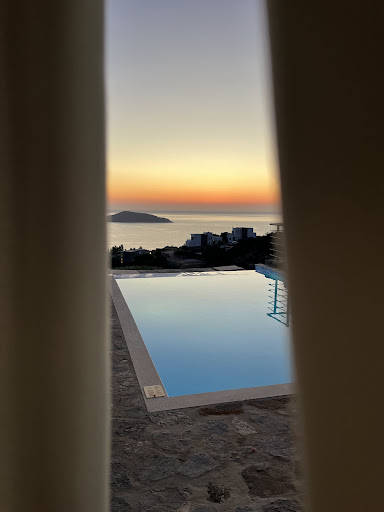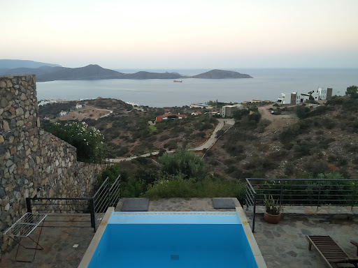 Read moreThe villa is a small complex of 6 identical three bedroom units complete with small kitchen, living room, multiple decks, book, BBQ, and lounge chairs. The highlight is the view – just amazing really. You see the entire Elouda bay and town and in the distance at the far end of bay Spinalonga island (a must visit if you are into history). There are some challenges with the units – they are “stacked” configuration so you come in on the middle floor (where the carport is) and there is a steep winding staircase up to the top bedroom with queen bed, small bathroom and a nice sitting deck (which more amazing views). Back down to the middle floor you continue down another floor to two smaller bedrooms, one with a queen bed and one with two twin beds. A slightly larger bathroom with tub is between the two bedrooms. Both room open up onto the pool deck where there is a large table and chairs. The finishing's are a fine, not luxurious but a bit dated. There is a tiny TV’s in the bedrooms and one larger TV in the living room. In the heat of the summer you will spend a lot of time in the pool. Each bedroom has a unit air conditioner. ||||Key point on these villas – they are NOT walkable from anywhere. You must have a rental car to access them as the are several kilometers out of town up on the hill. it would be best to arrive the first time in the daylight as it is located off a small road with several fork before turning up is a very very steep long drive. The road is one way so make sure you look to see if there is a descending or arriving vehicle!||||Overall if you are looking for a place for up to six people, want to make some of your own food rather than eating at restaurants every day, and have a rental car (there is really only one parking spot per unit at the apartment but there are a few extra next to the first...