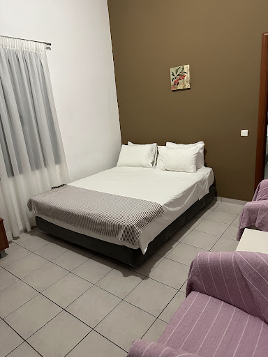 Our family of five arrived mid-August and from the outset, Yannis, one of the owners, couldn't do enough to make us feel welcome. We stayed in room 17, which opened directly onto the bar and pool area, and this was super convenient. The noise levels were acceptable and we often ended our days relaxing with drinks. Bar prices were very reasonable as were the prices for food, served 9am-5pm. As apartments are self catering, all food is prepared to order, from omelettes and toasties, to Greek meze, (of which they prepared vegetarian version for us). Some vegan food available, too. ||The room had two big bedrooms and we could fit our three boys in one easily with two beds and a comfy sofa-bed. Plenty of storage for food bits by the kitchen area and a big fridge freezer. Air con machines were in both bedrooms and have an auto cut off when windows or front door are opened. They were a little noisy, so if a light sleeper, bring some ear plugs just in case. We also had two W/Cs, with a shower in one, alongside a separate hand basin/shaving room. It all worked well for us and was clean, with cleaners also coming every three/four days, and bins emptied daily.||In terms of location, Sunrise is at the end of the nearby strip of aprtments and hotels, so is a little quieter (not that the immediate area is noisy at all), which was perfect. The apartments were around 5 minutes walk from the busy restaurant and bar areas and a 3 minute walk from supermarkets/shops situated on a parallel road behind. The best thing? You will be a 10 second walk from the sea! We often went snorkelling right opposite the complex before or after heading out for the day, and saw colourful fish, flying fish, crabs and starfish. The water is calm and perfect for swimming. It's a pebbly area so aqua shoes help. There is also a pebbly-ish beach area just a minute away to the right of the apartments where you can hire sunbeds and soak it up. A further few minutes walk and you can swim amongst the underwater, sunken city of Olous - a highlight of our trip. Expect to find old city wall remains as well as clearly marked building outlines, and toppled remains. Such a unique experience for the kids! ||Travel wise, there is a taxi rank in the town square, ten/twelve mins away. There are also tour operators in the town so plenty of options. If vehicle hire is your plan, there are a few companies within a few mintes walk of the complex. Right opposite the Sunrise, is Pete's boat cruises, which offers a cocktail cruise in the evening as well as daytime trips to the old leper colony on Spinalonga. There is also a local bus service, with stops around three minutes walk away, though the journey to the capital, though cheap, took almost three hours from start to finish including one change, as it had numerous pick up points on route.||All in all, the apartments were perfect for our stay. The team there were outstanding and super friendly, and I would recommend to anyone avoiding the packed busyness of those huge tourist traps. This was our gateway to self-sufficient blending of history...