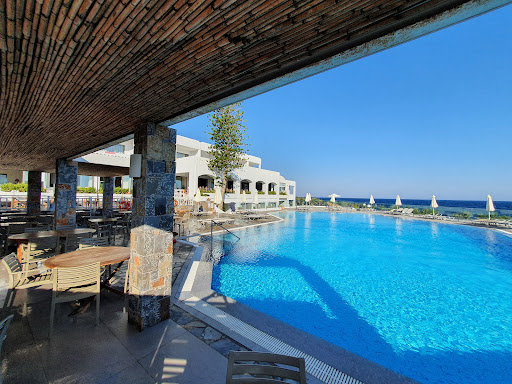 Read moreWe arrived late at the hotel (delayed) but we were warmly greeted and taken to our room ( the receptionist took our cases). We had room 209, a 2 bed, 2 showered room with an amazing view. We could see all across the bay and front pool and all across to Malia. |Very clean, beautiful towels and linens, lovely bathroom accessories, shower gel etc. and a really comfortable bed. The maids did an excellent job. Limited TV stations but that didn't concern us, a fridge was very handy and we had no issues getting WiFi.|The restaurant had lovely staff, very friendly, even if we saw them outside of the hotel, they'd say hi. Food was ok, not always hot unfortunately but we enjoyed the food they offered. Loved having coffee or tea served to the table at breakfast, a nice touch. |Nikos at the bar was really friendly and by the second night he'd remembered how we liked our coffee and Baileys!|The pool was really clean and well tended to, the pool bar served really fresh, tasty food, really enjoyable.|Entertainment two evenings was a saxophone player and a pianist, both very good.|The location of the hotel is amazing, we stood on the balcony one afternoon and watched a wedding ceremony nearby. |I hardly listened to any music while we were there, which is unusual for me, I just listened to the birds and the waves, it was magical. The gardens, fauna and flora were stunning and very well tended to.||The staff at this hotel make this hotel, they were all helpful and friendly, well done to all of you. (Some of the staff don't wear name badges which is a shame, I pointed it out to one of the waitresses and she told me her name but she also asked our names, which I thought was lovely).||I'd particularly like to thank the staff and hotel for helping us to celebrate our 20th wedding anniversary, we had a fruit platter and a bottle of champagne delivered to our room.| It was a really lovely touch and the whole holiday is one that I'll never forget, it...