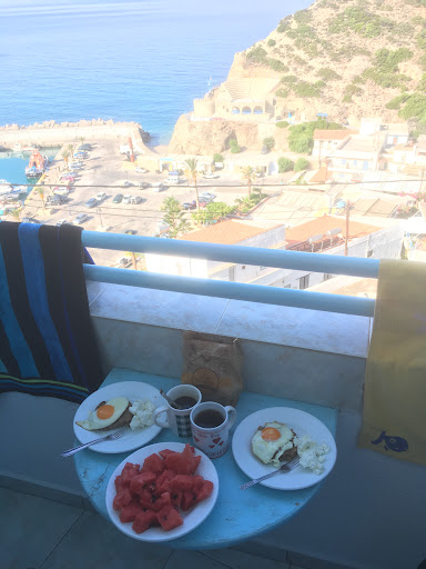 This hotel is ran by a local family. Some of the most welcoming, friendly, and helpful people I've ever met. They do the Greek reputation of superb hospitality full justice. The supermarket adjacent to the hotel is convenient. Rooms are basic but have everything you need and are very clean (and cleaned every day). There's a little kitchen in there if you want to cook yourself. Our room had a nice balcony, which was great for our morning coffee.