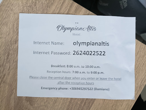 First, the negatives. 1. Very few parking places, two of which are used by the owner for her own car right outside the entrance. 2. There is no lift at all. If you are older or have a bad back, you will have at least 2 flights of stairs to negotiate. 3. Breakfast at this price should be of a higher standard. 4. The room, although it appears clean, can be used by people with pets. If you're not bothered about what pets do, then ok. 5. During our stay, there were two dogs that barked and upset my afternoon nap. 6. The bathroom was extremely small, and the toilet had to be flushed numerous times to be emptied. 7. The female owner didn't even say good evening or good night, terrible. 8. It is overpriced for what it offers. The plus side..1. The paid staff (i cannot stress this enouεgh) are all first class. The owners are lucky to have them, Ioulia was a joy. 2. Towels were changed daily. 3. Location was good.