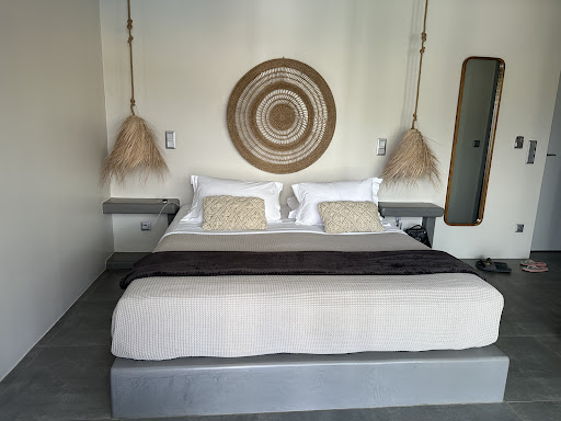 Design & Architecture: Arguably one of the best-designed boutique hotels we’ve seen in Greece. Raw stone, polished cement, clean lines, and natural materials, the aesthetic hits that sweet spot between minimalism and warmth. Feels like something out of an Architectural Digest feature, without being pretentious.