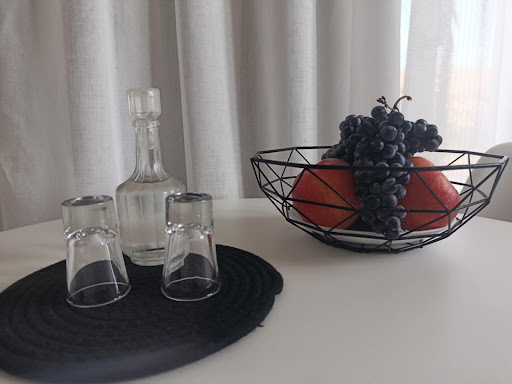 We were welcomed by Anastasia who made us feel at home. In the room, for a welcome treat, there was raki with figs and grapes from the owners' garden.