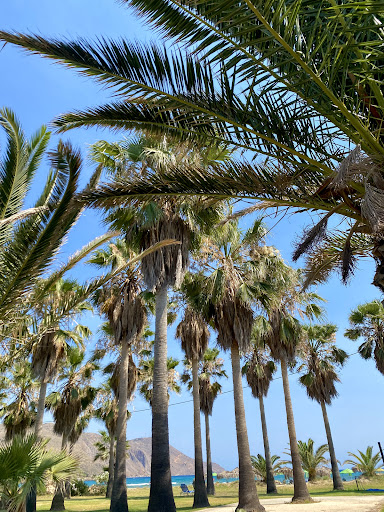 To jedyne miejsce w okolicy z prawdziwymi palmami, które robią klimat jak z bajki! Byliśmy na 2-dniowej wycieczce w Loutro (które też piękne), ale szczerze – nie mogliśmy się doczekać powrotu tutaj. To miejsce ma ten wakacyjny vibe ✨ Do centrum miasteczka 5 minut spacerem plażą. Idealnie!