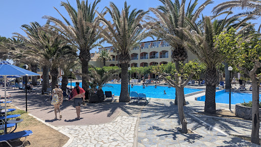 Read moreWir waren als Paar Mitte August für eine Woche mit Halbpension in diesem Hotel und wir waren sehr zufrieden. Das Hotel liegt direkt am Stand, hat eigene kostenfreie Liegen und Schirme. Der Strand ist ein reiner Sandstrand, seher breit und flacht nur langsam ins Meer ab. Es sind immer mehr als genug Liegen frei auch am Vormittag. Die Wasserqualität ist mit Abstand einer der schönsten die ich bis jetzt gesehen hab. Es ist traumhaft türkis blaues Wasser welches wirklich sehr schön klar ist. Einziges Manko ist die Temperatur des Wassers. An sich ist sie im Sommer sehr warm da aber im Westen ca. 200m entfernt ein kühler Gebirgsfluss ins Meer strömt kommt es oft vor das einem eine kalte Strömung erwischt die wirklich sehr erfrischend ist. Das Meer an sich ist im Norden der Insel recht wild. Wir hatten von 7 Tagen 5 Tage die rote Flagge. Man könnte dennoch ohne Sorgen von Rückströmungen schwimmen gehen. Man musste allerdings darauf achten nicht zu weit raus zu schwimmen da die Wellen teilweise recht hoch waren. Es gab aber sowohl links als auch rechts des Strandes Aussichtsposten die einen bei Bedarf wieder zurück gepfiffen haben. Das Pool ist für die größe des Hotels okay nicht allzu riesig und meistens war hier immer recht viel los. Das Wasser im Pool war immer sehr warm und es gab auch einige Liegen um das Pool herum. Störend war ein bisschen die Musik die immer wieder bei den Aktivitäten abgespielt wurde. Wir sind meistens unten am Strand gewesen da ist es deutlich ruhiger und auch schöner. Die Hotelanlage ist sehr groß und besteht aus mehreren Teilen die nur 2 Stockwerke hoch sind. Also kein riesen Hotel Klotz der heraussticht. In der Anlage selber ist es wirklich sehr schön begrünt überall sind Palmen und kleine Sträucher. Das Personal an der Rezeption und im Restaurant ist sehr freundlich und spricht fließend englisch oder französisch. Der Restaurant Chef ist dabei besonders hervorzuheben da er wirklich immer sehr zuvorkommend war und die Gäste Abends gerne auf ein Gläschen Schnaps eingeladen hat. Das Essen an sich war mehr als gut. Zum Frühstück gab es immer ein sehr großes Buffet mit allen möglichen süßen uns salzigen Speisen. Zu abends gab es ebenfalls ein großes Buffet mit Fisch, Fleisch und Vegetarischen Gerichten. Jeden Abend gab es auch ein sehr großes Salat Buffet mit allen möglichen Dressings und Toppings inklusive Zaziki. Die Zimmer entsprechen dem üblichen Urlaubs feeling. Nicht allzu riesig aber mit allem was man braucht inklusive Kühlschrank, Balkon und Klimaanlage. Die Wände und Türen waren nicht optimal schalldicht das war grundsätzlich kein Problem außer bei den hauseigenen Abend Vorführungen. Diese waren teilweise etwas laut und gingen manchmal bis 23h. In der Nähe des Hotels gibt es eine Bushaltestelle die in beide Richtungen führt, die Tickets dafür können im Hotel Shop gekauft werden ebenso wie Wasser oder andere Kleinigkeiten. Ausflugsmöglichkeiten gibt es hier auch genug. Zu empfehlen ist ein Besuch in den Strandbars auf einen Kaffee oder Cocktail, die Stadt Georgiopoli im Westen des Hotels (Gehzeit ca. 15 min., über den Strand oder über die Nebenfahrbahn), die Chapel of Agios Nikolaos die nur über einen Steinweg am Wasser erreichbar ist, die Profitis Ilias Church bei der man einen wunderschönen Sonnenuntergang beobachten kann und eine herrliche Aussicht auf die Bucht hat oder ein Besuch mit dem Bus in Retymino. Alles in allem waren wir mit dem Urlaub Preis Leistungs Verhältnis sehr zufrieden wir können das Hotel sehr...