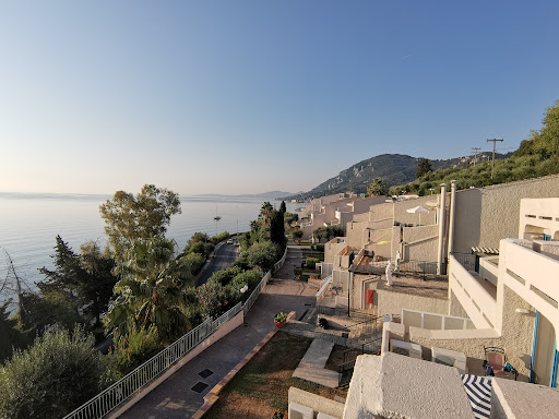 Read moreОт аэропорта добираться минут 20-25. Впечатления очень неоднозначные. Начну с того, что приехали в отель в 7 утра. Выезд в отеле в 12 часов, заезд в 14. Досидели до 12 - как выехала одна большая семья часов в 8 утра, так никто больше и не выезжал. Заселили ровно в 14 после препирательств. Не знаю, возможно это и нормально. Но за 15 лет поездок мне никогда не приходилось ждать заселения больше 30-40 минут, наверно, мне очень везло. На ресепшен при этом было неимоверно душно, стояла аномальная жара, окна открыты. примерно полчаса мне понадобилось, чтобы все-таки заставить закрыть окна и включить кондиционер. Стало более-менее терпимо. Забегу чуть вперед и скажу, что такая же история с духотой повторялась и в ресторане. При мне девочка лет 8-10 потеряла сознание, ее родители вынесли на свежий воздух, но кондиционер несмотря ни на какие просьбы остальных гостей администратор не усилил. Вернусь к заселению. Номер мне, как ни странно, понравился. Отель очень аутентичный, не типовой. Это отдельные разноуровневые блоки, по несколько квартирок с отдельными входами. У меня был абсолютно чудесный дворик, с прекрасным цветущим кустом, на которые прилетали красивые бабочки. Мебель в номере не новая, но вся исправная. Огромный телевизор, русского канала, по-моему, нет. Замечательный большой балкон, с великолепным видом на море, с качественной противомоскитной сеткой. Кондиционер работал нормально. Крохотный подончик в душе со слишком короткой занавеской был не очень удобен, но зато напор воды был хороший. Маленький холодильник в коридоре, сейф в шкафу. В ванне маленький фен. Телефон в номере не работал, за неделю не починили. Но он особо и не нужен. Море восхитительное, но пляжа как такового просто нет. Есть полоса камней метра 2 шириной, грязная. На ней стоят страшные лежаки, их довольно немного. Зонты берут редко, куполы у них маленькие, никакой перекрестной тени нет. Дно очень каменистое, камни крупные и скользкие, нужны тапочки (7 евро в ближайшей деревне). Ежей вроде нет. Водорослей полно, довольно неприятно. Ни душа, ни туалета, ни раздевалок, над головой оживленная автотрасса. Ребята, это не пляж. Детей одних с пляжа не отпустишь, дорога довольно опасная: переход сразу за поворотом, никак не обозначен, машинам вас просто не видно. На пляже ничего купить невозможно (да это и не пляж), нужно за всем идти в отель через дорогу и по всем лестницам. Буйков и ограничителей никаких нет, если заплываешь далеко, то плаваешь вместе с яхтами и моторками. Расположение отеля не слишком удачное, до ближайшей деревни 20 минут по узкому тротуару вдоль трассы, делать там нечего - несколько магазинов с ширпотребом и 8-10 таверн с откровенным фаст-фудом (кольца кальмаров в панировке, картошка фри и вечный салат по-гречески с оливками с косточками). Вкусно поесть там, на мой взгляд, не получится. Поэтому мы взяли напрокат машину (в самом конце этого поселка за 220 евро на 5 дней) и уезжали днем купаться, а вечером в Керкиру. Если возьмете машину, то до богемной Палеокастрецы ехать около часа (от керкиры свернуть налево), до Сидари (это север острова) ехать час пятнадцать. В Сидари очень красивые обрывы-террасы, стоит посмотреть. В Лефкимии просто симпатичный канал (это юг острова). Парковка у отеля бесплатная, машин мало, место есть всегда. Машинку потом ехать сдавать не надо, просто оставляете ключ 