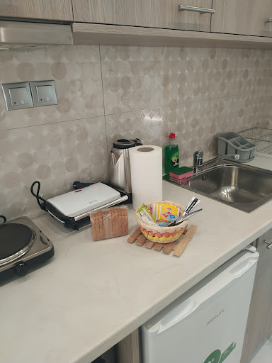 I've just come back from Paleokastriza with my friend, Claire. We had the most beautiful holiday thanks to our hosts, Spyros and his wife, Sophie. First of all, we arrived very late, around midnight...I let Spyros know beforehand and he expected us to give us the key to our room. Being such an excellent host, he made sure we had fresh water in the fridge, sugar and tea bags for the morning. Our studio was very clean, beautifully decorated in a Greek style and as a plus, we had a balcony and an amazing view over the sea and the mountains surrounding us. Spyros and Sophie were very helpful and kind to us, always ensuring that we were happy and had everything we needed: Spyros even drove us around Paleokastriza to show us the most beautiful beaches and on our last day he allowed us to keep the room until late as our plane didn't leave until evening. Spyros is a very charismatic man with a great personality, always putting a smile on our faces and up for joining us when fun was involved. :-)||I read reviews about the location of this place saying that it's up the hill and it's quite a walk to get there. Nonsense, the walk from the main street to the Manganas Studios takes only 3-5 min and it's very close to the main street-only 3-5 min away.||On the main street there are lots of shops and restaurants (all with WI-FI connection) with very helpful and welcoming people. Our favourite place was Nausika Tavern: I recommend to go for today's special and the Greek specialities wherever you go, the Greek cuisine is delicious. In terms of beaches and fun, Manganas Studios are within walking distance from all the main fun places. We recommend Cactus bar, The Apollon Restaurant, The Unlimit Bar, La Grotta. Get ready for the famous Greek Parties where you get the chance to dance on Greek music, to sing and smash plates!!! Trust me, it's extremely fun! The Akron beach is the closest to the Manganas Studios-5 min-, we spent a lot of time on it.||We loved our time there and will definitely want to...