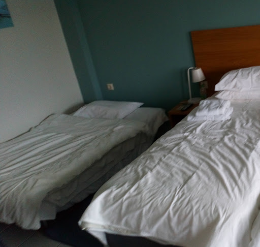 Read moreWe spent a night with the family during easter at Hara hotel. ||||Hotel does not have a parking available and parking in nearby streets was a hustle due to heavy traffic on Easter days where people flood Halkida. ||||Check in and check out was smooth. ||||Breakfast was good even though there was not enough omelette for people to get and we had to ask for more, which was again not enough. ||||Hotel roof bar had amazing view and drinks/ cocktails were nice. ||||Room was OK and clean, but bathroom did not have a glass cover so when we took showers the bathroom was literally flooded. Room views were amazing from the balcony although the distance between the balcony protective irons were quite big which could be dangerous for little kids. ||||For 70 euro per night Id anticipate for hotel slippers to be provided as well, but unfortunately they were not. ||||Overall good hotel, if it was for 40-50 eur per night Id consider it a bargain, for 70 euro...