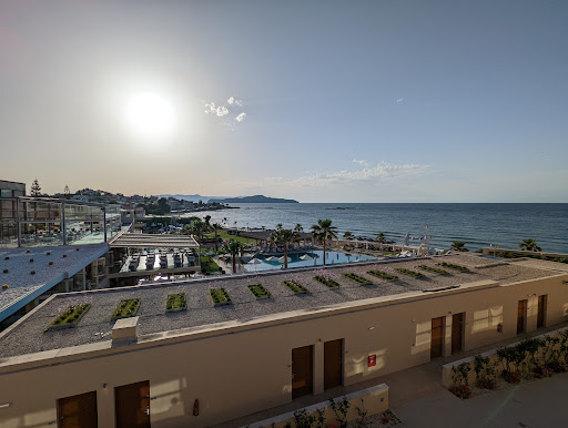 Read moreMy daughter and I have just had a very nice week at the Atlantica Kalliston. Here are our thoughts.||Pros: |Excellent location, only a 30 min transfer from airport and|Short bus ride into Chania town (buy bus tickets in a shop and you will save money!)|Fabulous pool(s)|Right by a lovely sandy beach|Low rise buildings, no 'block of flats' feel|Never felt crowded|Beautiful sunsets every night|Adult only|Nice modern decor|Really lovely staff|Exceptional storage in rooms - hate living out of a suitcase when hotels don't provide enough|Supremely comfortable beds!|Kept nice and clean.|In rooms you can put toilet paper in toilet rather than bin!|Food was good. ||We chose half board which we were pleased with. You can change your dinner to a lunch if you want to go elsewhere in the evening, in which case you can go to their Greek restaurant for a good salad buffet or get something from the a la carte menu. Drinks are always extra (we aren't big enough drinkers to get a drinks package) but we found a Cretan rose which was very nice and reasonable. You can also have one meal at the Italian and one at the Greek restaurant as part of your package. Plus there was an Asian which is outside everyone's package (I believe) which we did treat ourselves too. All restaurants were very good. Breakfast was a vast buffet - practically everything you could think of, something for everyone, with waitress service at your table for coffee/juice. Nice position of buffet restaurant, overlooking the pool area.||Bedrooms had lots of storage - nothing worse than not being able to properly unpack. An unusual set up with basin and shower within the bedroom! Shower was behind an opaque glass door. Benefit is that basin/shower/toilet could all be used separately. Beds were sublime - it was actually hard to leave them!||Pools were lovely but we liked the 'lagoon' best with its gentle slope into the water, only shoulder deep, perfect temperature, nice planting around it. We always found a sunbed by pool but despite the fact it's not supposed to be permitted, we had to resort to putting our towels out before breakfast as everyone else did it and we may not have got one otherwise. There is always 'pop' music played around the pool, didn't bother us, but some may prefer it quieter - maybe it is around the other pools?||Sea was gorgeous, though we did find the navy cushions on the beach sunbeds got way too hot so we couldn't use them.||Cons:|We went to a similar resort last year and liked that a member of staff took the time to show us around and give us some information. Here we were just taken to our room and shown the a/c (never really got the hang of it, it was a bit hit and miss but super cool!) and as a result we got to the end of day 3 before we found out that we could change our beach towels daily in the gym, buy cheaper bus tickets in the supermarket opposite, book restaurants on touch screen machines etc. The hotel is a bit of a maze so a map with the location of restaurants/gym/spa etc would have been useful!|The 'entertainment' wasn't really necessary. There were singers, dancers, musicians each night but hardly anyone went to watch and it was all ok but not worth going out of your way to see.|To economise we chose a room with an inland view as it was practically £100 each to have anything better. What we did not expect, was a busy coast road running right past our doors. It may have only been a single carriageway but it is well used and when a motorbike went past we certainly knew it. I would upload a video, but don't think I can! The a/c slightly muffled it but we feel very strongly that these rooms should be marketed as noisy (at a lower price), or at very least the doors should be soundproofed - I don't go on holiday to stay in a room noisier than my own at home. As a result we never used our terrace which is a shame. A couple of times we were approached by staff members asking if all was ok and we mentioned it both times. Both times they took details but didn't offer any solution. We aren't the type to make a big fuss so we just got on with it, but it would have been nice if they had attempted to talk to us about it and/or offered us a different room?|Lastly, if you don't wish to return to your room to use the toilet whilst round the pool there are public toilets dotted around. Useful, but who on earth decided that they should have glass doors?! It may be patterned glass but there is no privacy whatsoever and women in particular need this. As I washed my hands one day the mirror very clearly reflected a lady in the cubicle behind me completely removing her swimsuit... After this I made the (long) journey back to our room to avoid them. It also seemed that the shower cubicle by the indoor pool/gym area had the same glass - this cubicle is visible by both men and women from outside the gym area as they pass by. I cannot think of any circumstance when glass doors are acceptable in public toilets and showers - unless they are blacked out.||Overall it's a lovely hotel and we had a very...