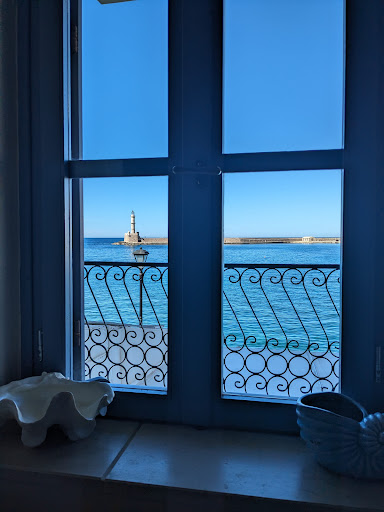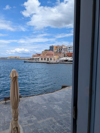 Read moreGlad we booked a taxi from Chania airport to the hotel through the hotel as the night porter met the taxi and walked us to the hotel, about 8 mins from the back road. We are so grateful for this as we wouldnât have found it so quick and with a lot of luggage. Access from the harbour side is probably easier to find the hotel but further from any road or parking. He then took us to our room and the hotel up the alleyway opposite where breakfast is served and explained everything, excellent service and very friendly. |All the staff have been very friendly and helpful. |View from room and balcony was amazing, right on the harbour, with plenty of good restaurants and cars around. Sound proofing is good too with very little noise coming through at night. |Comfy bed and good air conditioning. |Beach towels available from reception with nearest beach at Nea Chora 20 min walk away and lovely. |Breakfast is served up the alleyway in a sister hotel, not far. Self serving with most things you want fruit, cereals, nuts, yoghurt, honey, toast, cheese, ham, fried eggs, bacon, sausage, various sweet and savoury pastries, Greek specialities ( the stuffed mushrooms were very tasty). We didnât use the roof terrace as we had our own balcony. |Negatives - We were in Room 7 (only 8) , the wooden shutters do not cover the top of the balcony window and doors therefore letting in the light from sunrise. |For those less mobile or unsteady on your feet, thereâs no lift and no handrail on the curved stairs for the upper floors. |But would...