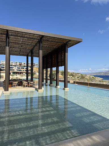 Read moreAbsolutely gorgeous property with breathtaking views and beautiful architecture including all of its rooms, suites and common spaces (restaurants, spa, pool, beaches, etc.) The rooms are clean, well stocked and beautiful with comfortable beds, fluffy towels, cold AC, fridge, tea/coffee maker, nice bathroom with vanity, shower and tub and most come with an outdoor space and private pool as well. The spa and gym is also architecturally beautiful and nice. The pool and beach is gorgeous and of course offers a stunning view of Crete and its turquoise blue water from every angle. The location, while remote, is only a 30min drive from Chania, and a 5min walk to the small town of Marathi where there are a couple of nice seafood restaurants perfect for lunch or dinner!