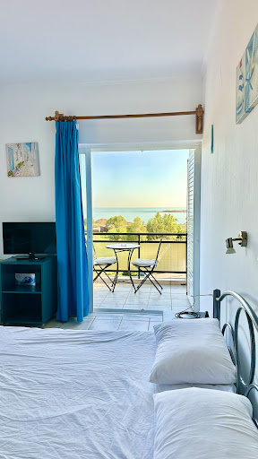 The place is quite isolated, in a group of 2-3 other small hotels. Very nice beach with sunseats and a grand new bar is only 300 metres away. Big supermarket 500m and a couple of cafeterias 1 kilometre away, distance to closest food tavernas in Kato Daratso more than 2 km. (Kalliopi is actually situated in small village called Makri Stihos, not in Kato Daratso exactly.) My room was on the third floor with a seaview, try to get that one. Room was spacious and spotless. Had the only bathroom in Greece with shower curtaing long enough. Owner, Swiss origin lady, is nice and helpful. ||||Now, bear in mind this is a low budget place and what I'm going to tell is just advice how to be prepared, not criticizing: ||- ear plugs, because it's not soundproof inside and the noises of oher guests echo loudly (such a shame, because no noise coming from outside)||- scissors, serrated knife, bowl, pasta rinsing grille...the kicthenette is modestly equipped (no kettle, no toaster etc)||- bottled water, the water from the tap is always warm (close by is a minimarket, from where you can drag the water from)||- the set of a plastic table and two chairs must be carried back and forth to balcony, because there is no furniture there||- wifi keeps collapsing ||||All in all, it was a decent place. The lack of tavernas and the modest kitchen ware plus no soundproof keep me from giving four stars. Still, I recommend it, especially if all you really need is...