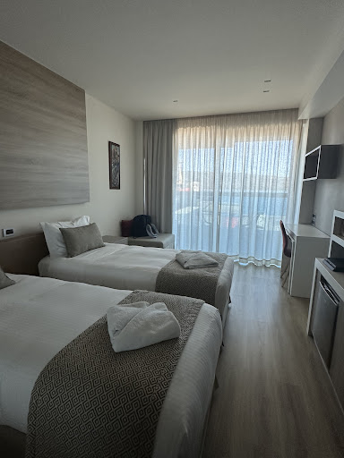 I don’t even know where to begin with this hotel. All employees were so kind and patient with my large family group and this was greatly needed after 2 days of long traveling that included many cancelled flights and long restless nights . A little back story we were supposed to board a cruise in Rome but due to late arrivals from our flight company we missed the departure and had to catch the next stop in Chania. We went almost three days without proper food, clothes or beds to sleep in, but the second I walked into the lobby I felt relieved and finally was able to be at peace because we were treated so well. The receptionist was very fast when checking us in and she was so helpful and getting to know the area. Once we got to our rooms everything was set up so nice and this hotel was very luxurious and the view from our balcony was phenomenal. Everything was clean and I have to admit that I took the best shower of my entire life in the bathrooms. I truly from the bottom of my heart cannot thank this place enough especially the man who drove us from the hotel to the dock to where we boarded our cruise and did not charge us anything. I’m sorry that I don’t know your name but you have a heart of gold and I’m grateful that you were patient and helped us bring our 15 luggage’s to the dock 😅. If you are in Chania book this hotel and you will not...