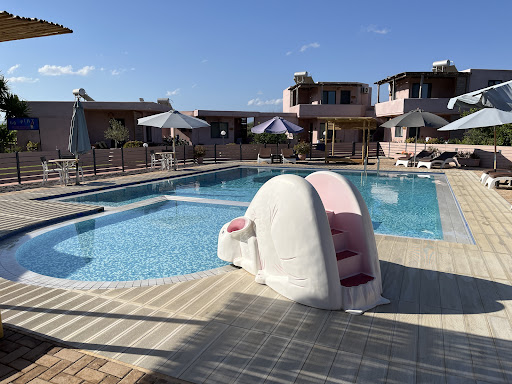 It's hard to describe how perfect this is for parents, as it's such a small place, the kids all make friends quickly and play together allowing you to relax, maybe even read a book!!! The pool also has a really good 50cm deep section for toddlers to play in. The beach is close (Stavros) and is a really nice sheltered beach with calm water for the kids to swim in. It's relatively close to the airport (which is a bonus) but there isn't much airplane noise and you can't hear any from inside the apartments. There's also mini horses to stroke and chickens which the kids can collect fresh eggs from.