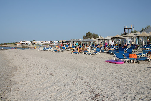 The beach was very narrow and steep, small pebbles not sand, and large rocks under the surface. Rough sea with a steep drop. Not great for adults let alone kids.