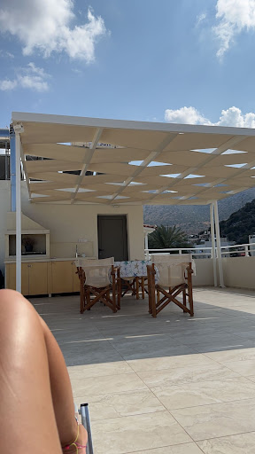 This accommodation is remarkable! The furnishings have a high valency. There is a rooftop terrace where you can relax and have a barbecue. From there, you also have a sea view. You can even wash your clothes in the sharing washing machine. Everything was nice and clean, and we felt very welcomed. The owners are lovely people who care a lot about the property. From our ground level terrace, we had a beautiful view into the mountains. The apartment is in the middle of Stalida, only 100 meters from the beach and 10 meters from the main shopping street, but it was never noisy. It is a quiet, peaceful...