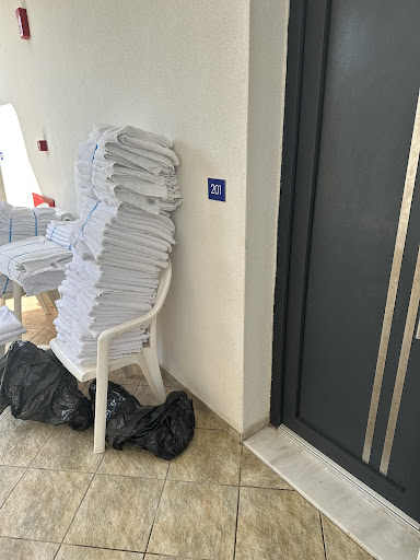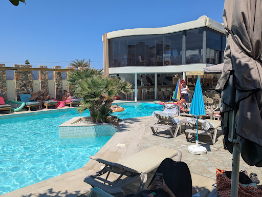 I'm the morning we visited the pool. It looks small but we never shared it with more than five people. We always had a sun bed and we're able to relax. The pool bar is manned by Joanna and George. They are both lovely and the bar always has great songs playing from a local radio station. After a week, we felt relaxed and the kids loved it. Travel to and from the airport was short. As we were to be out of our room at 11am, we paid €50 and had a day room. We left at 11pm and it was a god send!
