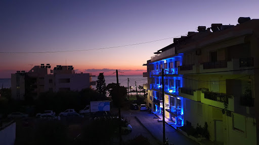 The hotel is half board with breakfast and dinner. Even though we did the check-in very late, they offered us the dinner, some delicious food and desserts. Mr. Manos, the man in the front desk who welcomed us, was very polite, he explained carefully every detail, what was included etc. The hotel has different buildings, but we had our room in the main building. It is located in a very calm area. Room was cleaned, comfy and delightful.