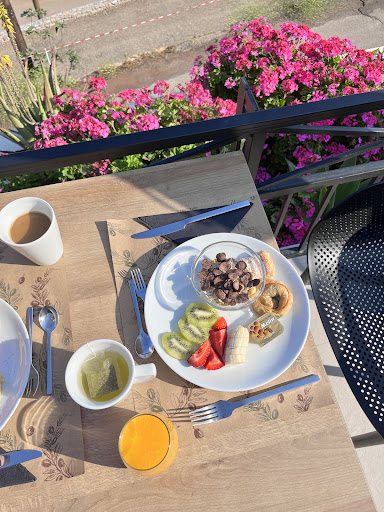 On arrival, we were picked up by the taxi that was organised through the hotel. It only took approximately 25 minutes to get to the hotel by car. We were greeted by Billy, who was extremely helpful and explained everything in detail to us and showed us the room. We were immediately impressed by the stunning view from the room and the modern interior. All the facilities were super new and the room was sparkling clean (and cleaned daily). What we enjoyed extremely much was how comfortable the beds were. We read a lot of reviews saying the beds are very comfortable, but we did not actually expect to sleep THIS well! Breakfast was amazing every morning, it had a lot of variety (fresh smoothies & juice every day), and you could taste that thought was put into every dish. I think the breakfast was especially nice because it had such a calm vibe with wind, shade, and a view of the ocean. Since there are no kids allowed in this hotel, we enjoyed the quiet poolside every day. But most of all, we felt that the service experience was so personalized to our needs by the team. When we asked for dinner recommendations, we were never disappointed, and we felt that the staff paid close attention to our needs and did everything they could to make us have a good time. On the last day, we had to leave at 6:00AM in order to catch our flight, and Costas made sure to prepare us a bag with food that we could take with us so that we wouldn’t miss our last day’s breakfast. There was a big selection of cocktails that you could order by the pool, and the ones we tried did not disappoint. Thank you to the team for such a lovely week, we enjoyed every day!!! Our favourite dinner restaurants: