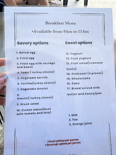 Das Frühstück ist außergewöhnlich, da man in Griechenland normal kein frisch zubereitetes Frühstück bekommt. Es wurde auf alle meine zahlreichen Lebensmittel Unverträglichkeiten und eine Magenverstimmung eingegangen. Ich konnte jeden Tag bestellen, welches Gemüse/Essen dabei sein darf und was nicht. Die Küchenzeile ist top ausgestattet, wir haben auch viel selbst gekocht.