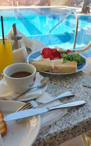 Read moreIntreg personalul locatiei sunt oameni excroci, din primele 10 minute de cand am ajuns , ne-au cerut 14 euro extra per camera pentru niste taxe ciudate, avand in vedere ca pachetul excursiei includea toate taxele. La 1 minut dupa, am fost anuntati ca trebuie sa platim aerul conditionat 10 euro extra pe zi pentru fiecare camera, in total 70 de euro pentru toata vacanta ( desi ofertele din online sunt prezentate cu tot cu facilitatile de AC si nu ca extra cost). Am fost si luati la misto ca daca nu vom cumpara aerul vom suferi noaptea de caldura si zgomot. Pe parcursul intregii sederi ne-am mai confruntat cu o gramada de probleme pe care le voi puncta detaliat, incepand cu curatenia. Doamna de la curatenie intra in ce camere avea ea chef, dadea cu mopul pe jos, intindea asternutul existent pe pat si pleca. Toata saptamana, asternuturile nu au fost schimbate, nici macar la cerere. Dupa 2 zile am cerut schimbarea prosoapelor, iar dupa multe comentarii in scarba si ochi dati peste cap, am primit. La fel am patit si cu hartia igienica, pe care am primit-o odata la 3 zile dupa lungi rugaminti. In camera, nu exista TV , iar in toata cladirea este un singur Wi-fi care functioneaza doar noaptea tarziu cand nu e conectata toata lumea, pe timpul zilei nu poti trimite nici macar un mesaj pe retelele de socializare. Dupa ora 23 nu exista asistenta la locatie, nu te ajuta nimeni in cazul in care ai vreo problema, iar proprietarii nu au raspuns la telefon cand am intampinat o problema cu o cheie de la camera. Preturile barului de la piscina sunt destul de exagerate, recomand achizitionarea de la supermarket-urile din apropiere. Sezlongurile din jurul piscinei sunt murdare, probabil nu au mai fost curatate de cativa ani. Per total , pentru cei aproape 600 de euro achitati pentru excursie, am avut conditii de maxim 2 stele, iar sederea nu merita mai mult de jumatate din pretul pe care l-am achitat. Pentru a incheia intr-o nota pozitiva, as dori sa laud piscina care este grozava, am avut parte de zile placute in ea, iar clatitele cu nutella au fost senzationale. In concluzie, sederea a fost de 2...