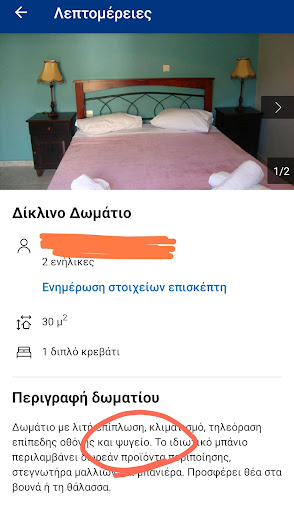 Το χειρότερο μέρος που έχω μείνει. Όχι (μόνο) εξαιτίας των παροχών, αλλά του οικοδεσπότη. Η ΟΙΚΟΔΕΣΠΟΙΝΑ ΜΟΥ ΟΥΡΛΙΑΖΕ ΚΥΡΙΟΛΕΚΤΙΚΑ ΣΤΟ ΤΗΛΕΦΩΤΟ γιατι της είπα με πολύ ήρεμο τρόπο "Δεν είναι καθόλου σωστό τέτοια εποχή να δίνετε δωμάτιο χωρίς ψυγείο" Είναι η μέση του καλοκαιριού και η ζέστη υπερβολική. Είχαμε κλείσει δωμάτιο με ψυγείο, διότι έχουμε μαζί μας τρόφιμα που χρειάζονται ψυγείο αλλά και για να πιούμε ένα δροσερό νερό. Φτάσαμε στο δωμάτιο και δεν υπήρχε ψυγείο. Η οικοδέσποινα μας λέει τηλεφωνικώς πως μόλις χάλασε και δεν πρόλαβαν να το ο αντικαταστήσουν και πώς έτσι κι αλλιώς δεν είχε ψυγείο στις παροχές του δωματίου. Εγώ της είπα φυσικά πως χρειάζομαι το ψυγείο και πώς το δωμάτιο το έκλεισα γιατί είχε ψυγείο. Έπειτα λέει πως θα φέρει, αλλά να περιμένουμε μια ώρα. Εμείς θα μέναμε για μια μέρα στην περιοχή και εκείνη την ώρα θέλαμε να πάμε στο ηλιοβασίλεμα, οπότε θα το χάναμε για να περιμένουμε το ψυγείο. (Τελικά ήρθε λίγο νωρίτερα από ώρα και το προλάβαμε οριακά, σε ένα σημείο του δρόμου και οχι εκεί που πηγαίναμε). Της είπα με πολύ ήρεμο τρόπο προς το τέλος της κλήσης "Δεν είναι καθόλου σωστό τέτοια εποχή να δίνετε δωμάτιο χωρίς ψυγείο και να περιμένετε πως θα μείνουμε" και η κυρία ΑΡΧΙΣΕ ΝΑ ΦΩΝΑΖΕΙ! Επίσης ήταν 7 το απόγευμα και μας ειπε πως μας "αποδεσμεύει" από την κράτηση και μπορούμε να φύγουμε και θα μας επιστρέψει τα χρήματα, να βρούμε άλλο ξενοδοχείο. Πράγμα που θα κάναμε, αν δεν ήταν αυτή η περίοδος και η ώρα, αλλά δεν θέλαμε να χαλάσουμε τις διακοπές μας και το χρόνο μας για κακές συμπεριφορές. Και όλα αυτά για είπα πως δεν ήταν σωστό που δεν μας παρείχε αυτά για τα οποία είχαμε ήδη πληρώσει! Στις εικόνες της κράτησής μας φαίνεται άλλο δωμάτιο από αυτό που μας έδωσαν και έλεγε ξεκάθαρα πως έχει κουζινικά σκεύη (που επίσης δεν είχε) και ψυγείο! Έπειτα διάβασα αρκετά σχόλια που έλεγαν πως δεν είχε ψυγείο το δωμάτιο, άρα μας είπε ψέματα η κυρία πως χάλασε! Επίσης δεν ήταν κανείς να μας υποδεχτεί και περιμέναμε κάποιο χρόνο μέσα στη ζέστη, κάτι που διαβάσαμε και σε άλλα σχόλια. Η τοποθεσία ήταν το μόνο που άξιζε στρατηγικά, αλλά τέτοια συμπεριφορά...