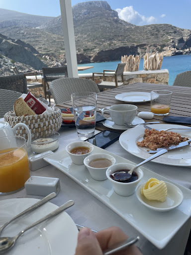 Read moreUnfortunately our Blue Sands experience was overshadowed by an unpleasant experience at breakfast on our second morning. After waiting 40 mins to order our breakfast, we simply had to walk away. The waitress on service that morning deliberately ignored us and we were given the impression that the she had an issue with us and did not wish to serve us, as evidenced by: - the removal of our menus and giving to another table who then had their order taken immediately. We have never seen this anywhere, without an order being taken. - after that table was served, and allowing for the chance that the waitress had forgotten we had not ordered, I asked the waitress clearly for 'some milk for the coffee and to finally order our breakfast' , which the waitress appeared to acknowledge, though quite abruptly and without eye contact. This was after about 20 mins. - subsequently, one small milk was then dropped off, in a hurry and again without any eye contact, where we did not have the chance to order. - in a sign of a lack of prioritisation, a table was cleaned by the waitress when none was waiting for it and two tables, arriving after us, were served and one table arriving after 5 minutes of them arriving placed their order. We then left after 40mins, in total. This was unacceptable and not down to chance - it is, in our view, a lack of trained staff and the absence of a management system made worse by a complicated menu. The breakfast experience ruined our morning as, while hungry, we then had to find an alternative, which wasn't so nice in Chora. On Sunday/Monday we didn't then wish to repeat the experience and thankfully we found beautiful Pounta in Chora. You don't want to go back to something if you can avoid it when it had been so bad, in the hope that it may be OK. Am sure there was a misunderstanding somewhere during the Saturday service, Friday's has been fine, though for the price we paid we feel that this level of service is far below what should be expected and there appeared to be other guests experiencing the same issue of being delayed in getting served.
