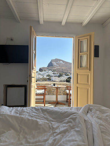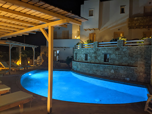 Read moreBeautiful and small quiet hotel. Very Clean. Very quiet. Few rooms, each feels like it's own little apartment with terrace and unique entry. Small pool, relaxing, not rowdy. AC worked well. Breakfast on site. Backgammon and games to play. Beautiful and has some views of the little town, the big church and the sunset. We arrived in the Port and we're greeted by the owner who drove us the short drive up to the hotel. Our room was ready and even came with a free bottle of wine (honeymoon!). The hotel is situated around the corner from the bus stop (v useful) and a 1 minute walk from the walking streets of chora-the main town. What makes this 5 stars is the family that owns and runs the hotel. They are filled with supreme care. Great value and pride in...