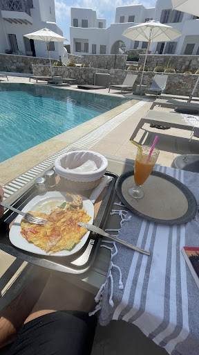 My husband and I stayed for 4 nights in the first week of September. Hotel offers impeccable cleaning service, new structure and a beautiful pool. It is located 07 minutes walk from Chora, the charming village of restaurants and commerce. Staffs are friendly and helpful.|| ||Points of attention: the hotel is located on a hill in front of the ocean. If you have any morbidity you should consider. Just as if your stay is on a windy week (which is common in the region), the use of the pool and the balcony will be compromised as will the silence of the rooms. ||As the rooms are to ocean, the winds bring absurd noises in the doors and windows. The wind level is so strong that you feel pressure in your ears with the bedroom door open. What does not happen in hotels located in the center of Chora due to the natural protection of the place. ||||Despite the great space of the room, we had back pain during our stay due to the hard mattress.||||The hotel does not offer breakfast included in the rate. On our first day we tried to eat but the service was slow and we gave up. Which was great because in the center of Chora you can find options with better value for money and...